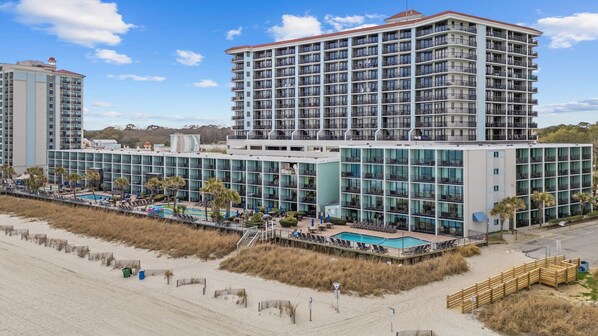 As a guest at our oceanfront condo, you'll have access to a variety of fantastic amenities. Enjoy direct access to the beach for sunbathing, swimming, and seaside fun. You'll also have access to the North Tower's pools and exciting water parks, perfect for all ages. Inside the condo, you'll have full access to the fully equipped kitchen, comfortable living room with a sofa bed, three bedrooms (one king, two queens), and two bathrooms. Step out onto your private balcony to soak in the breathtaking ocean views. This is your family's gateway to an unforgettable Myrtle Beach vacation!