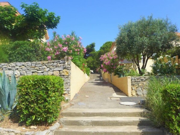 Résidence "Les Romarines". Sur une colline, à 500 m de la mer. Place de parking. Magasins, magasin d'alimentation, supermarché, restaurant, bar 200 m, arrêt de bus 300 m, plage de sable "Plage du Grazel" 500 m. Tennis, tennis couvert 400 m, centre équestre 5 km. Attractions à proximité: Réserve Africaine de Sigean 29 km, Cité de Carcassonne 71 km, Espace Balnéoludique de Gruissan 2 km, Plage des Chalets 4 km. La remise des clés a lieu à l’agence Interhome de Narbonne Plage, 10 km.