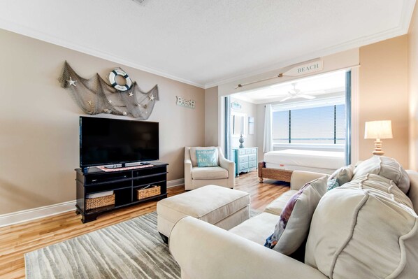 My husband and I traveled to this location with our daughter for a week long vacation at the beach. We LOVED the beach. We loved the price and reviews, but were not impressed on our arrival. The condo was not cleaned well. There were spots that were missed in several areas. The condo really needs an overall deep clean. Things like the outside of the refrigerator need wiped down, which I know don't really matter to most, but it was gross. We pulled the bed out for my daughter and there were spots on the mattress protector and food crumbs. That was totally unacceptable. The pull out is extremely uncomfortable. My husband watched a movie with her one evening and the whole thing flipped up. The stool in the kitchen was broke when we arrived and they came to get it when we got there, but never brought it back. Every shampoo, soap, and conditioner in the shower was empty. They made a huge deal in the book that they only provide what they 'give', but they gave nothing. The price is great, the room is small, but a great place to crash at night. It just needs some TLC and a good cleaning. It honestly needs better management. When I told them there was no soap, etc. They just said they would let the local management know and then there was crickets. I definitely prefer the locally owned VRBO instead of the big company owned spots like this one.