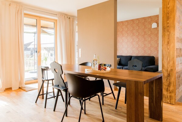 The cozy apartment Anneliese is located outside of Neukirch, between the Allgäu and Lake Constance and not far from the neighbouring countries of Switzerland and Austria with a host of excursion destinations and leisure activities. The 65m² apartment is finely furnished with consists of a living room with floor-to-ceiling windows, a well-equipped kitchen with a dishwasher and Nespresso machine, 2 bedrooms as well as one bathroom with changing table and can therefore accommodate 5 people. Additional amenities include Wi-Fi and satellite television. A washing machine and a dryer can be provided on request as well as an iron and board, toys and board games.