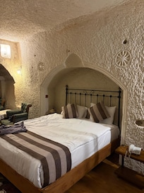 Hotel authentique en plein coeur de Goreme. Meublé sobrement afin de laisser le charme de la pierre s'exprimer. L'équipe est au top et le petit déjeuner savoureux. Hautement recommandé.
