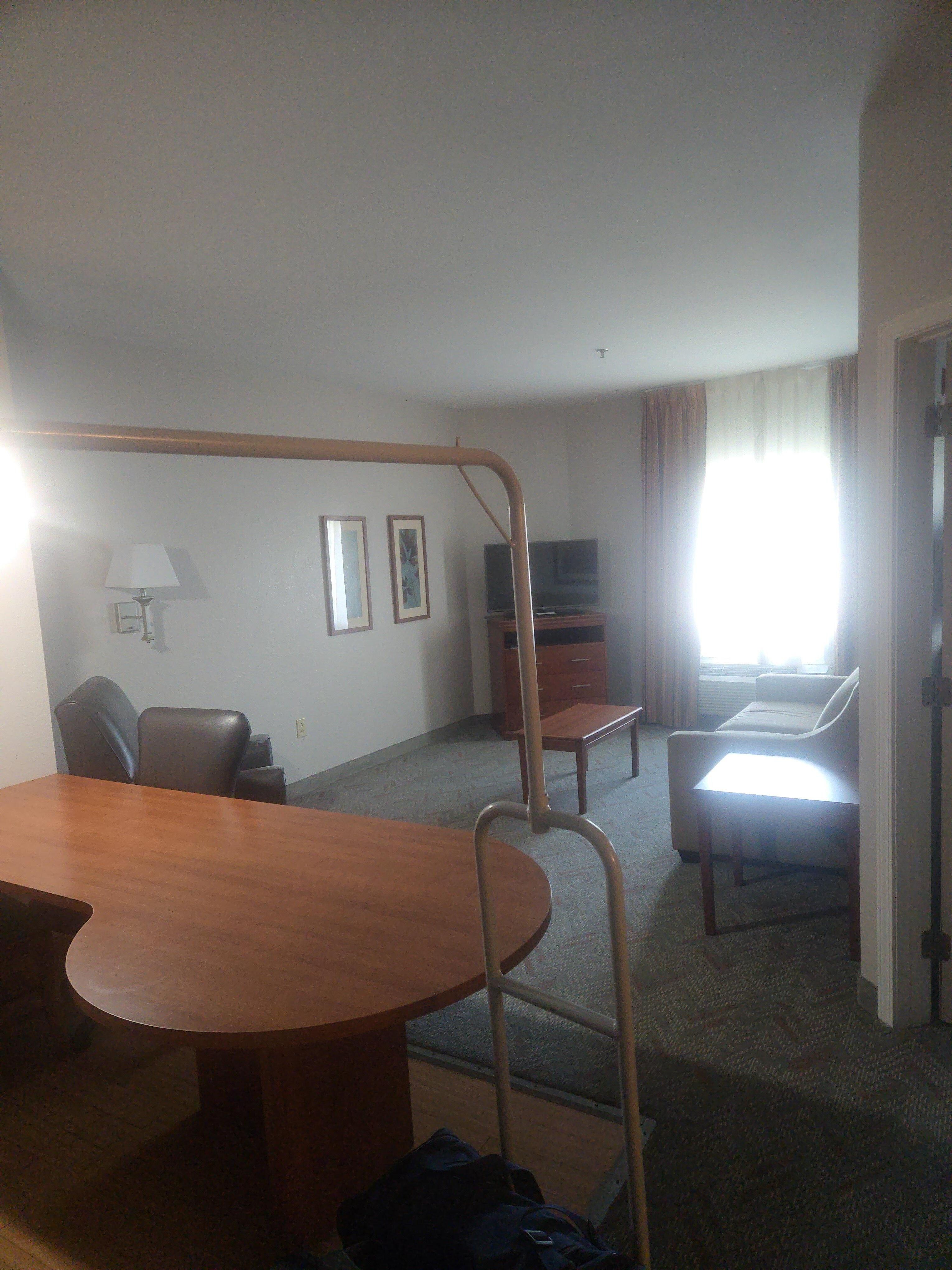 The smoke alarm battery went out at 5:30 AM and woke us up with constant beeping. The heat didn’t work. It was 63° all night. We woke up with sore throats. And the television clicker remotes did not work. We couldn’t turn the TV off we could just turn the volume off down. The hotel itself was very nice if all those things had not gone wrong. The gal that checked us in was very nice. Just three strikes against it. I would not stay there again.