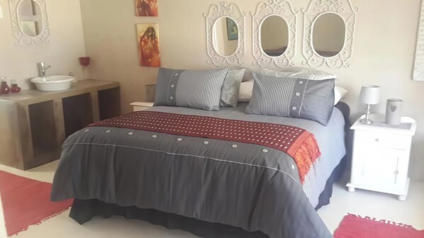 Arty self-catering cottage nestled in a tranquil garden with calming birdlife.