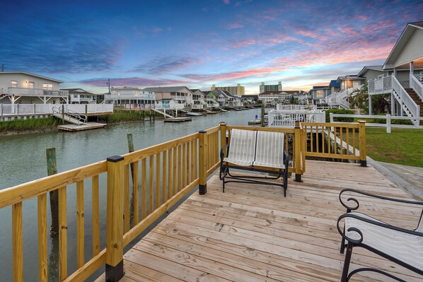 Most of the home is dated. Very surprising kitchen; refrigerator dated, small and had an odor. The microwave over the oven was rusty inside and out. The few pots and pans were scratched terribly on the insides and no lids matched any pots. There was one decent fryer pan. Over stocked with dishes and cups. Need ceiling fans in all rooms. Especially the living area. Wall paper just barely holding on in bathroom. Beds not comfortable. Blankets in closet needs to be thrown away; old, smelly and stains. I did enjoy the backroom with reclining chairs to watch the tide come in and out. 3rd home prior to crossing bridge at boat landing. Every table is glass. Blinds broken. There is an antique TV/VCR/CD Player/AM & FM in sitting room. Plus many VCR taps to choose from. Overall, the home appeared to be furnished and decorated from a thrift store.