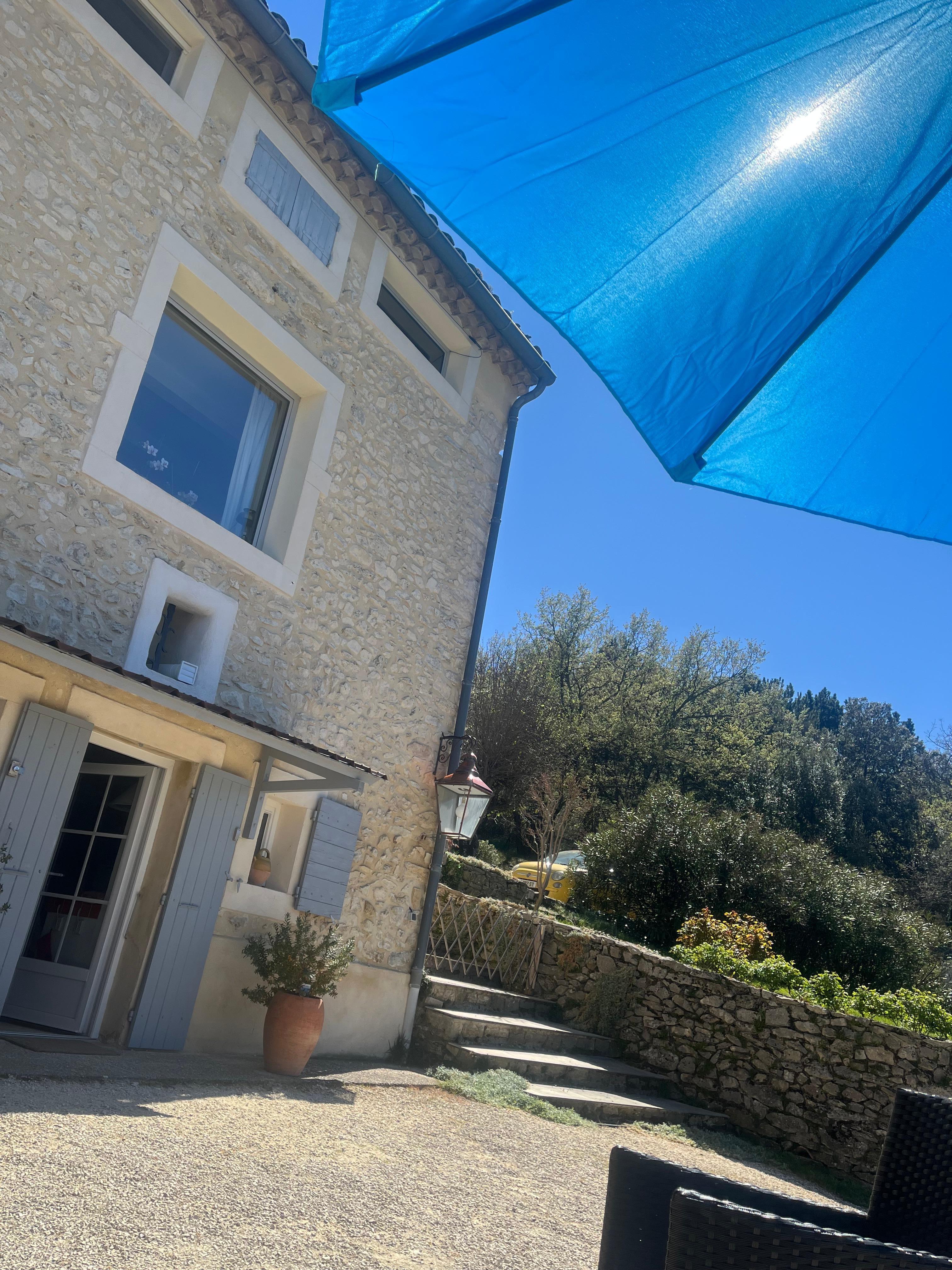 Il est situé dans un mas provençal en pierre avec des murs très épais, ce qui permet d'avoir une ambiance tempérée en toute saison et surtout fraîche l'été.