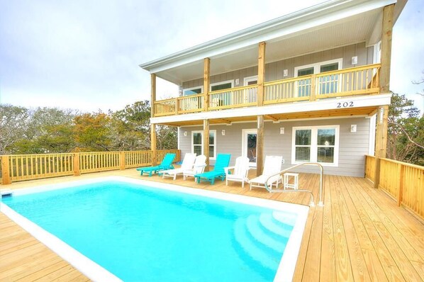 Bright & welcoming oasis with private pool, patio, & balcony views