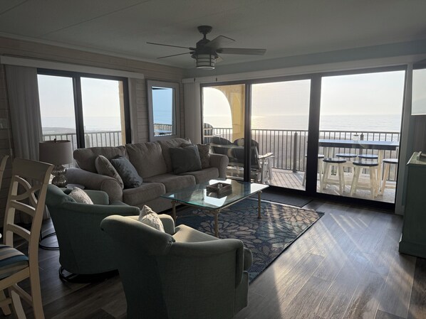 Oceanfront, vue sur l'océan de toutes les chambres !!! 3br, avec matelas King tout neuf en master et nouveau lit superposé 2 places. 2 nouvelles reines dans la troisième chambre, le salon, la salle à manger et la nouvelle cuisine entièrement équipée!