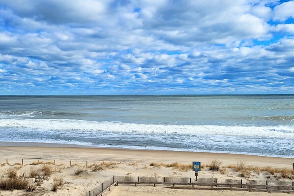 Corner unit ocean view condo with large balcony, direct beach access, & W/D