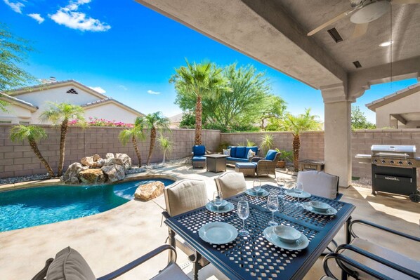 L'hébergement Beautiful Home w/ Casita and Private Pool & Yard. In Sun City Palm Desert! dispose-t-il d'une piscine ?