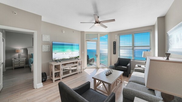 Aqua Resort / Luxury 17th-Floor Beachfront Condo / Gulf-Front Primary / Sleeps 4-6. Discover your ideal beach retreat in this elegant 17th-floor condo at Aqua Resort. Designed for relaxation and style, this beautifully appointed beachfront unit features stunning Gulf views, premium finishes, and all the comforts of home - perfect for couples, small families, or a relaxing getaway for friends. Why You'll Love This Condo: Gulf-Front Primary Suite: Wake up to panoramic water views from the king bedroom, complete with an en-suite bath featuring a glass-enclosed shower, double vanity, and generous storage space. Additional Sleeping Area: A cozy daybed in the guest room provides a comfortable space for an additional guest or child, with access to the shared hallway bathroom. Private Gulf-View Balcony: Step out onto your spacious terrace and soak in the sights and sounds of the Emerald Coast from 17 floors up - ideal for morning coffee or sunset watching. Fully Equipped Kitchen: Prepare meals with ease in the well-stocked kitchen, featuring granite countertops, stainless steel appliances, and everything needed for home-cooked meals. Stylish, Light-Filled Living Area: Floor-to-ceiling windows flood the space with natural light, framing incredible ocean views from nearly every angle. Conveniences of Home: Includes an in-unit washer and dryer, smart TVs, high-speed Wi-Fi, and comfortable furnishings to make your stay effortless. ️ Resort Amenities at Aqua: Gulf-Front Pools & Hot Tubs: Choose from multiple resort-style pools, including indoor/outdoor heated options and relaxing hot tubs. Fitness Center with Gulf Views: Stay active with state-of-the-art equipment while overlooking the beach. Beach Chair Service Included: Enjoy complimentary setup of four chairs and and two umbrellas daily from March 15 to October - a $500 value, included with your stay. Important Information: Primary renter must be 25 or older and present throughout the stay. No pets, smoking, vaping, or party groups permitted. Extended stays (15+ nights) may require a non-refundable deposit. Travel insurance is strongly recommended during hurricane season (June - November). Starting January 1, 2025: All guests must pre-register vehicles using a link provided after booking. Aqua allows up to two vehicles per unit. Onsite parking is $50 per vehicle, per stay. This is an Aqua Resort policy and not set by the rental manager. The Warren Beach Rentals Advantage: When you book with Warren Beach Rentals, you're getting more than a vacation rental - you're getting peace of mind. We are a locally owned company that specializes in luxury beachfront rentals across PCB, 30A, and Destin. Every home is hand-picked and maintained to the highest standards. We provide: Keyless check-in - no lines, no hassle. Pre-arrival inspections - what you see is what you get. High-end linens & towels: 24/7 local guest support. We make sure your stay is exactly as perfect as the pictures! Whether you're planning a relaxing beach escape or a romantic Gulf-front getaway, this Aqua Resort condo offers the perfect balance of luxury and convenience. With unbeatable views, easy access to the sand, and everything you need for a seamless vacation, your dream coastal experience starts here. Reserve your stay today and enjoy the best of Panama City Beach at Aqua 1710.