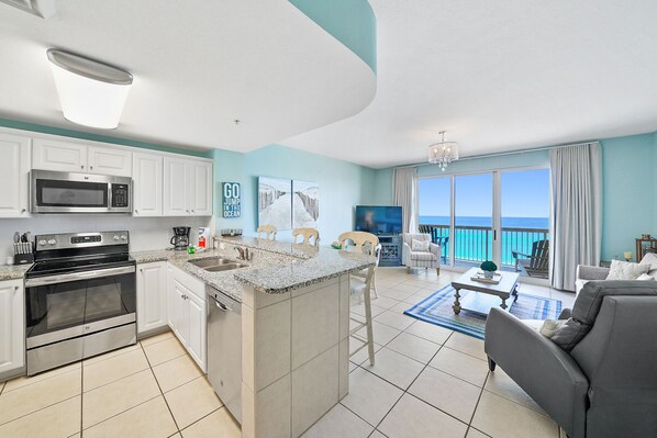 Gulf-Front Escape / 1BR Calypso Condo / VIP Beach Service + Pier Park Views. Modern Comfort Meets Classic Beach Vibes / Perfect for Couples or Small Families. Hosted by Warren Beach Rentals - Local, Trusted, Premier Management. Sleeps 4 / 1 Bedroom + Sleeper Sofa. ️ Primary Bedroom: King bed, Smart TV, luxury linens. Living Room: Queen sleeper sofa, Smart TV, balcony access. High-speed WiFi + TVs in both the living room and bedroom. Why Guests Love Calypso 803 West. Gulf-front balcony with amazing 8th-floor views - above street & pool noise. Fully remodeled in 2020 with designer upgrades: ️ Granite countertops: ️ Custom cabinetry: ️ New tile flooring: ️ Stylish furniture + plush bedding: VIP Beach Service Included (March - Oct): 2 chairs + umbrella - $350 value! Fully equipped kitchen with Keurig, toaster, blender & more. Fast WiFi - lightning-speed connection few units offer. Quiet luxury - no mosquitos or gnats this high up. Professionally managed by locals - 25+ years of experience, on-call support. Calypso Resort Highlights: 2 Gulf-front pools with unbeatable views. Direct beach access: Tiki Bar (seasonal): Fitness center: General Store onsite: 24/7 gated security. Right next to Pier Park - restaurants, shops, entertainment, and fun. Parking Info: ONE parking pass per unit, required and managed by Calypso HOA. $60 per vehicle per stay (subject to change). Registration link provided before check-in: House Rules: No pets: No smoking or vaping: Check-in: 4 PM CST / Check-out: 10 AM CST. Primary renter must be 25+ and stay the entire time. The Warren Beach Rentals Advantage: Locally owned & operated - real people, real help, real fast. Over 25 years of hosting experience. Thousands of 5-star reviews. Exclusive Calypso specialists - perfect for large group bookings. High-end cleaning + prep standards: Whether you're planning a romantic beach escape, a solo getaway, or a relaxing trip with a small family, Calypso 803 West offers a boutique beachfront experience with the comforts of home and the perks of a resort. Walk to everything. Relax on the balcony. Sleep to the sound of waves. Book now and enjoy the best location in PCB!
