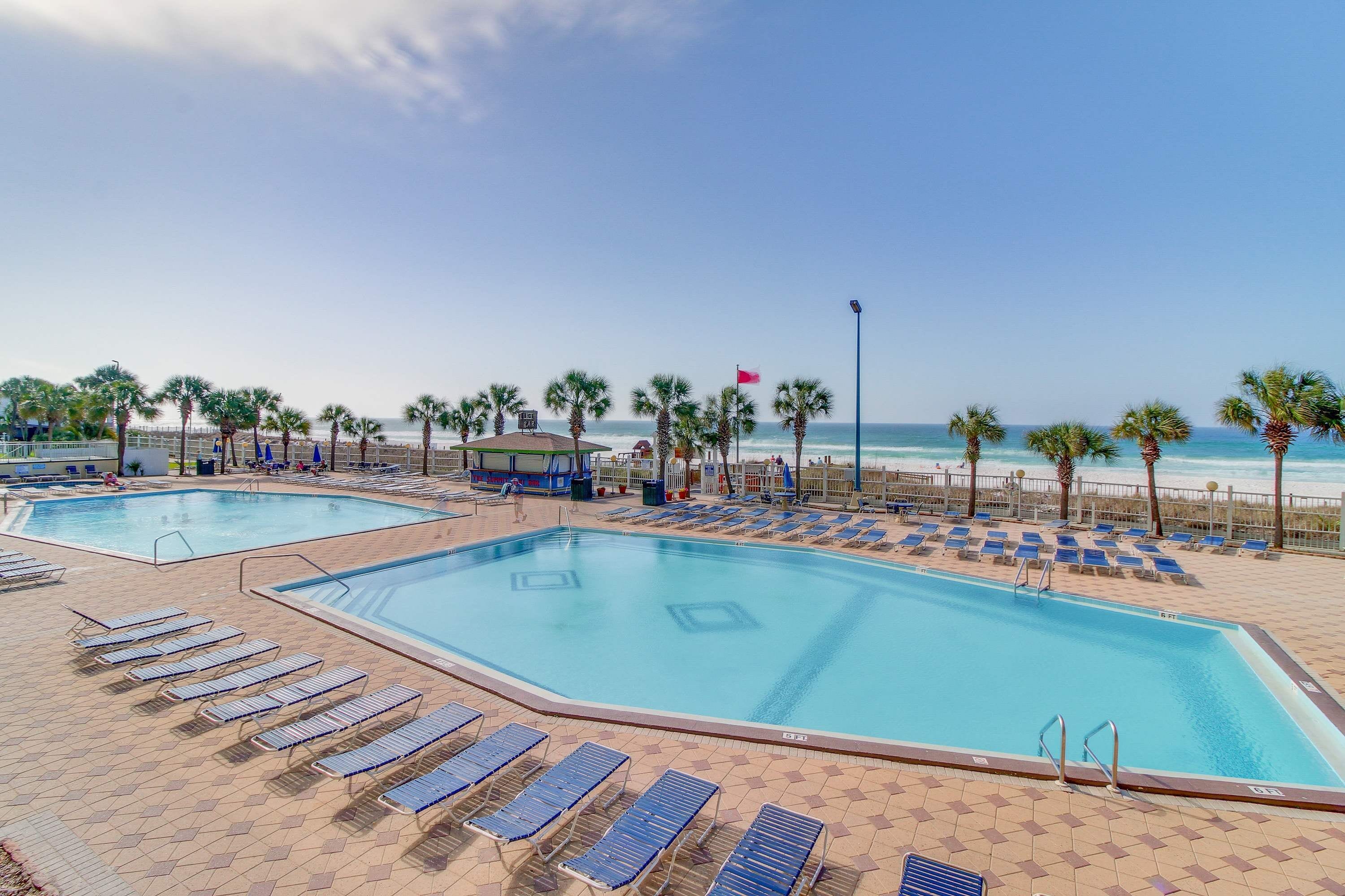 Beachfront resort condo with gulf views, pools,splash pad, hot tub, & gym