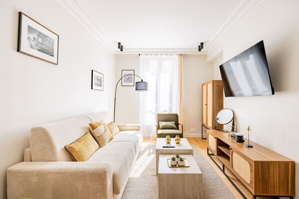 🏠✨Détendez-vous dans ce logement calme et élégant au cœur du 17ème arrondissement de Paris. Idéal pour 4 personnes, il offre une chambre double confortable et un canapé-lit de qualité. Son style épuré et neutre crée une ambiance chaleureuse et accueillante. Lumineux et spacieux, l`appartement dispose d`une cuisine moderne ouverte, entièrement équipée pour vos repas. La chambre spacieuse est un havre de paix parfait pour se reposer après une journée à explorer Paris.