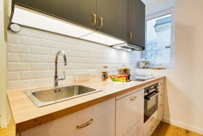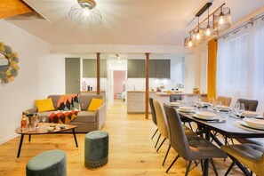 Comfortable beds and furniture with enough dining seating for 8, lots of dishes and equipment in the kitchen. Metro #5 is just a block away with a fresh produce market, cheese monger, wine shop, cafes and restaurants just doors away. The flat was due for a deep cleaning especially the floors. This was communicated to the host and our feedback was positively received. The flat was a fabulous home base for our Paris adventures, the building was quiet and secure. The neighborhood felt safe. Make sure to bring your own hand soap, paper towels, dishwasher detergent and laundry detergent. The only drawback was that these items were not provided and we felt that at the nightly rate we paid, these essential items should have been provided and would have made our stay fantastic instead of satisfactory.