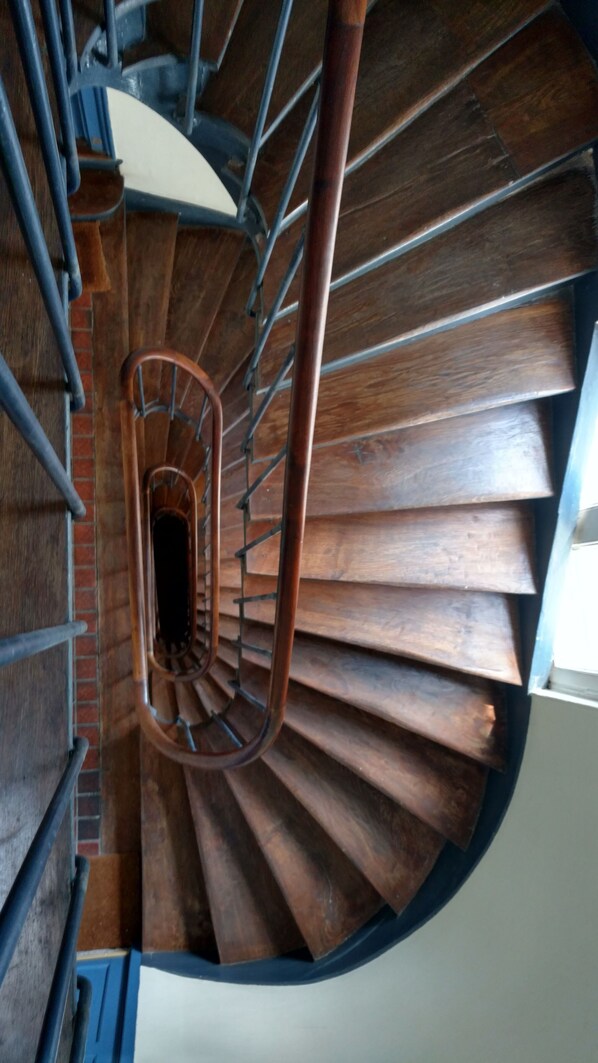 Il est situé au 5ème étage d’un immeuble ancien traditionnel, et sa hauteur lui donne beaucoup de lumière et de soleil. Traversant. Double exposition Est / Ouest. Il y a un ventilateur au plafond, bien pratique en cas de grosse chaleur. Je précise qu'il n’y a pas d'ascenseur, désolé, comme souvent dans le Marais.