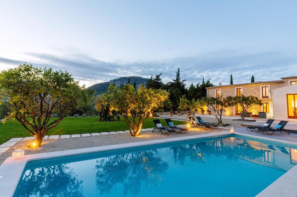 The large private pool, well-kept outdoor areas and fully equipped kitchen encourage long, carefree days at home, while pretty Pollensa is just five minutes away for cafés, shops and the famous Calvary Steps with rewarding views across town. For sea and sand, Puerto Pollensa is around fifteen minutes away, offering a long golden beach and an easy promenade for evening strolls, along with plenty of inviting spots for dinner by the waterfront.