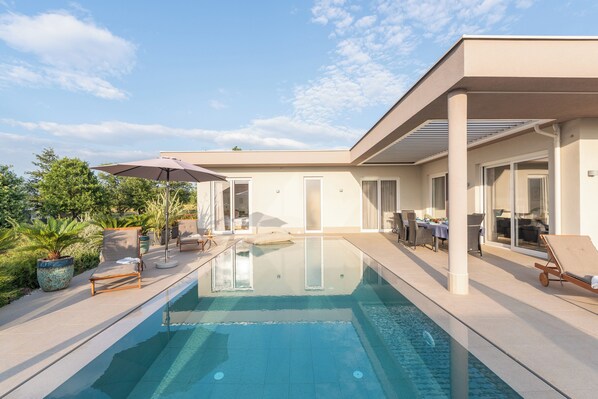 Modern villa Serena with pool,beautiful garden,quiet location,panoramic sea view