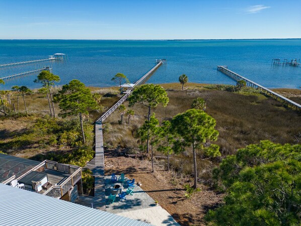 Chaque niveau de l’intérieur de la maison comprend une cuisine séparée, une salle à manger, un salon, une chambre et une buanderie; et un porche grillagé Bayfront sur toute la longueur offrant des coins salon et salle à manger offrant une vue infinie.