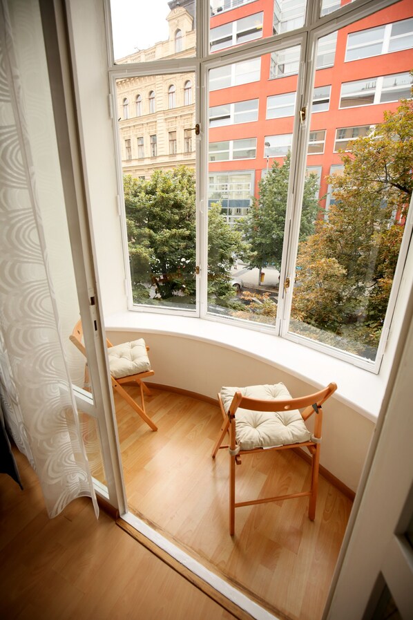 🍹 For your convenience apartment has panoramic balcony with street view where you can relax and have cold drinks