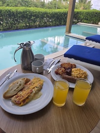 Room service was horrible. It was never 100%. Mini fridge not restocked, lack of new towels, sometimes was after 3pm when cleaned. Staff wasn't very friendly, and the language barrier was very challenging. The food was like the same everyday, and wasnt very good. The restaurants was a challenge to go to do to the reservation process. If you couldn't get in you had to go to the buffet that gave you the impression of leftover food from the night before or two. The pool area and the beach was about the nicest thing. The resort inside looks out dated compared to its sister resort just next door. If you dont mind kids its a 100% better and prettier. The staff needs to interact better we are on vacation to explore. I've heard great things about the DR and the resort made it sound unsafe, dont get me wrong they had a excursion table, but we booked one and the driver was an hour late after we had to call. We wanted to go shopping and got taken to a hut store in a back hole in the wall, and that driver left us there. The resort needs a lot of help in many ways. You dont want to judge it by the cover you see, because the inside is a struggle to get thru. So much that the lack of enjoyment lead to just a handful of pics of memory.