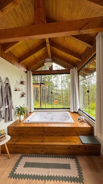 Envie d'une petite escapade à la montagne ? Cette cabane avec spa se trouve à 0,1 km de Place Leonardo Sell et à moins de 25 km de Parc d'État de la Serra do Tabuleiro et Belvédère du Morro da Boa Vista. Paroquia de Santo Amaro da Imperatriz et Rivière Cubatão sont également à 32 km de distance.