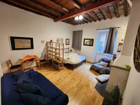 Dit appartement ligt in Stadscentrum van Rome, op 5 minuten wandelen van Tiber Rivier en Piazza Navona. Ook Pantheon en Campo de' Fiori liggen op 10 minuten wandelen. Arenula-Cairoli Tram Station ligt op 13 minuten wandelen en naar Station Spagna is het 13 minuten wandelen.