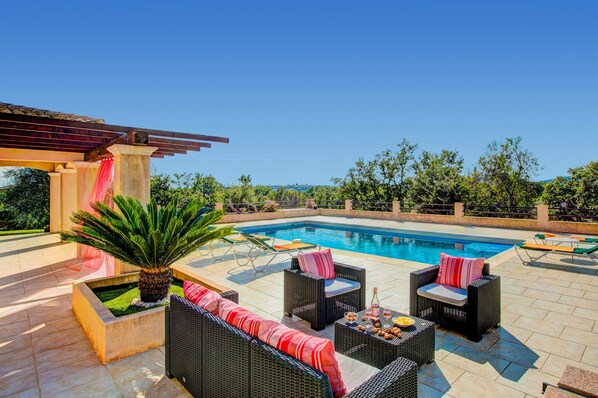 Villa Soleiade is a stylish 4 bedroom property with wonderful views over the surrounding countryside and across to the village of St Cezaire sur Siagne. Set in expansive grounds, the villa has a large private pool with a fabulous, spacious terrace area overlooking the olive trees, perfect for a relaxing holiday. The charming village of St Cezaire sur Siagne, with a selection of restaurants and cafes, as well as some small boutiques and a supermarket, is just a 5 minute drive away. WiFi is included.