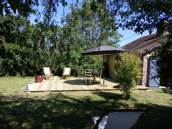 Vous pourrez profiter du jardin, coin repas, coin détente chaises longues.
