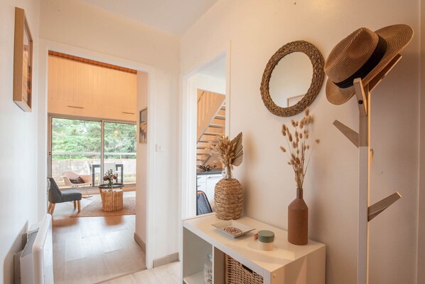 Appartement de 52m² meublé avec goût et moderne qui possède 2 chambres et qui peut accueillir jusqu'à 4 personnes. Elle dispose de mobilier de jardin, d'une plancha électrique et d'une place de stationnement extérieure. Au sein de l'appartement, vous trouverez un fer à repasser, un sèche-cheveux, un lave-linge, un sèche-linge et une télévision. La cuisine américaine, est équipée de plaques en vitrocéramique, d'un réfrigérateur, d'un four, d'un congélateur, d'un lave-vaisselle, d'une cafetière à filtre et Nespresso, d'un grille pain, d'une bouilloire et d'un presse-agrumes.