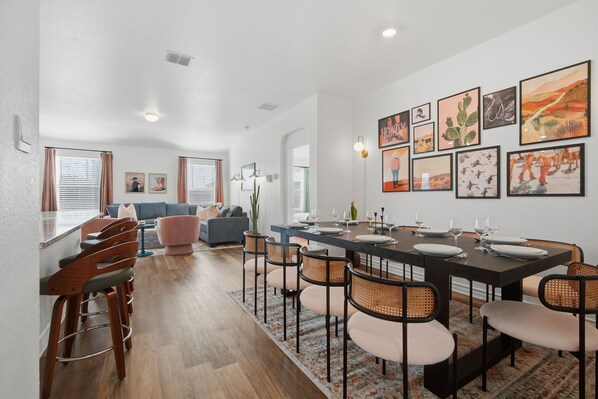 Toutes les chambres de l'hébergement Desert Chic Comfort - Near SeaWorld & Lackland AFB sont agrémentées de touches de confort comme un système de réglage de la climatisation et un coin salle à manger séparé, en plus de services et équipements comme une chaise de bureau et une table à manger.
