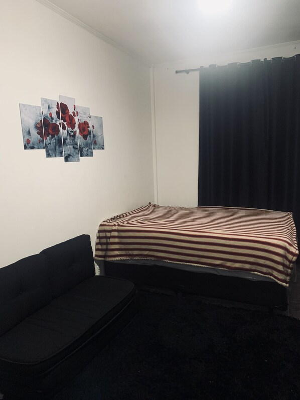 Les chambres de cet appartement comprennent un sèche-cheveux.