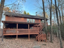 Dog-friendly, deux cabines de l'histoire dans les bois w / moustiquaire pont, bain à remous, table de billard