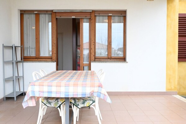 Description: two-room apartment on the ground floor. Entrance to the living room with double sofa bed, single sofa bed, TV. Kitchen with oven, hob, table with chairs. Double bedroom. Wi-Fi connection. Washing machine in a small, dedicated room. Terrace with table and chairs where you can eat. Pets allowed.
