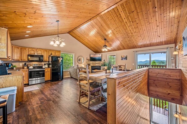 Les chambres climatisées de cette cabane incluent des cheminées et un sèche-cheveux. Les chambres ont une cuisine avec une plaque de cuisson, un micro-ondes et un lave-vaisselle.