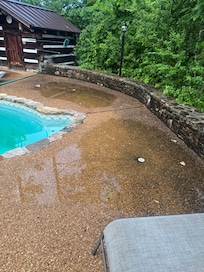 Do NOT book this property!!! It is terrible!!! I had read the reviews after I booked and was concerned. I contacted Bear Camp Cabin Rentals because they manage this property, I emailed them and expressed my concerns about the pool and internet services. They responded to my email and even sent a picture of the pool that showed the pool was clean and in working order. What a LIE!!!! I had to send pictures via email that showed the pool was green and had algae in it. We couldn’t use it throughout our stay. The pool company came the day we were checking out… a little late for that. All of the lounge chairs by the pool were ripped so those couldn’t be used either. Then there’s puddles that are forming around the pool that appear to look like sinkholes full of water. It’s terrible!!! The outside door handle by the kitchen was broken. This home has not been properly kept up Now for the garbage… If you have more garbage then the small outside garbage bin then you have to take it Bear Camp Cabin Rentals office and dispose of it. Who wants to drive with garbage in their car? What if someone doesn’t have a truck? Now for the “walk” to the dock… If you are not in tip top shape and I mean like if you aren’t running 5k’s then you will struggle walking to and from the lake. This walk to the lake/dock is STEEP and certainly not for the elderly or small children. The pictures are very deceptive. I will NEVER book this place or with this management company ever again! Shame on them all!!!!