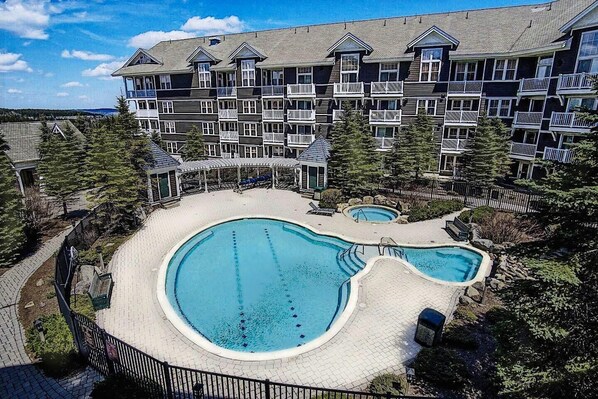 Appartement condo avec un bain à remous offrant un accès direct aux pistes de ski