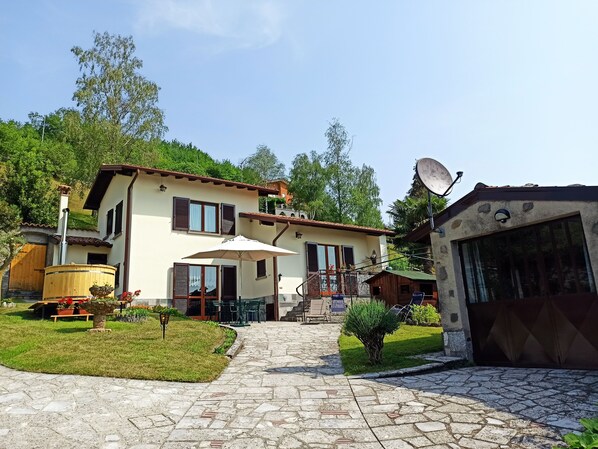Notre charmante maison indépendante à usage exclusif est située dans le centre historique de Solto Collina, dans une zone vallonnée au bord du charmant lac d'Iseo, à environ 450 mètres d'altitude. La maison dispose de 2 chambres avec salle de bain plus annexe avec salle de bain/buanderie et chambre avec canapé-lit pour deux personnes. Cuisine/salle à manger avec accès au jardin équipée de chaises, table, parasol, transats et barbecue. Le jardin est clôturé et exclusif. La maison est située dans l'ancien village médiéval avec accès à pied depuis la Torre Foresti centenaire. XIV. (La voiture doit être garée sur le parking public gratuit à 100 mètres). Dans notre maison, vous disposez d'une baignoire finlandaise entièrement en bois. En hiver, avec le froid, vous pourrez profiter du luxe d'un bain chaud en plein air et en été, avec la chaleur, vous pourrez profiter d'un bain frais. Ce sera pour vous une détente de bien-être dans le silence de la nature et la vue sur nos montagnes. Il y a une maison en bois pour les enfants dans le jardin plein de jeux.