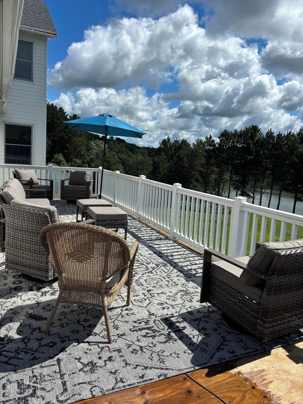 Back at the house, enjoy stunning lake views from both sides of the wrap around deck—ideal for sipping your morning coffee or relaxing at sunset. Inside, the cabin is clean, cozy, and comfortably furnished. While the bathrooms feature the original fixtures of the home, everything is well-maintained and fully functional.