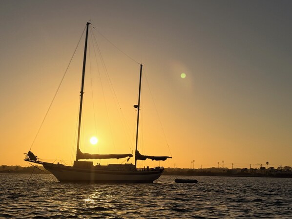 Anchored sailboat stay in beautiful St. Augustine