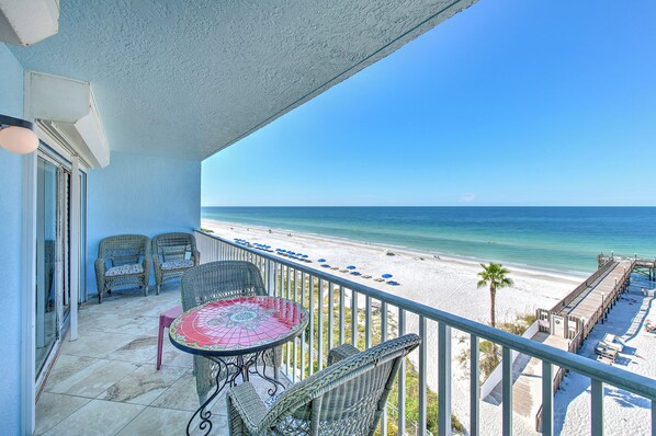 Home Away from Home - Sand Dollar 505 is a SILVER Tier three-bedroom, two-bath Gulf Front vacation rental located in Indian Shores. This spacious 5th-floor (Top Floor!) vacation rental has a delightful décor and includes a private Gulf Front balcony with a view of our beautiful white sugar sand beach. Plenty of balcony furniture to enjoy magnificent sunsets!