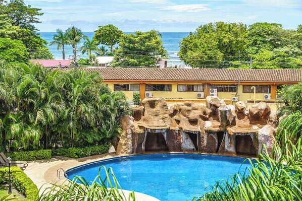 Imagine overlooking the ocean in the heart of downtown Tamarindo while sipping a cool refreshing beverage in your own private oasis. You can have this supreme style and comfort at the luxurious 3-bedroom condo located within the Sunrise Complex, indisputably one of the best locations in Tamarindo on the Pacific Ocean in the Guanacaste region. Not only can you step outside your condo and take a dip in Sunrise’s resort-style pool, with a remote-on-site waterfall. The beautiful Tamarindo Beach is just a quick short walk across the street. Just outside the condo community security gate, (which features 24/7 security for your convenience), there are coffee shops, bakeries, smoothie shops, grocery convenient store, and surf shops/rentals. And across the street you’ll be directly across the street from Tamarindo Beach including its beach front restaurants, bars, and boutiques.