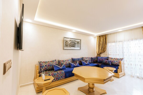 Cet appartement vous donne rendez-vous à Tanger, plus précisément dans le centre-ville, sur la plage. Faites le plein de culture en visitant les emblématiques Musée de la légation américaine de Tanger et Musée des Arts Marocains, ou passez par les sympathiques Port de Tanger et Tanja Marina Bay pour vous éclater le temps d'un après-midi. Consultez notre guide de voyage sur Tanger