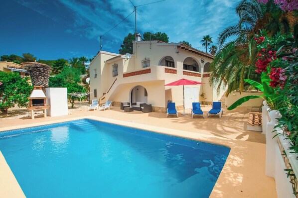 Nestled on the tranquil outskirts of Moraira, Villa Miquel offers the perfect blend of peace and accessibility. This charming villa is surrounded by a vibrant Mediterranean landscape and is just a short walk from a beautiful cove, a beachside bar, and a variety of local restaurants. The area is filled with light and life, thanks to its lush green surroundings right by the sparkling coastline. For those seeking more activity, the bustling coastal town of Moraira is less than two kilometers away, where you'll find the main sandy beach "La Ampolla" and a wide selection of amenities and water sports, from scuba diving to jet ski trips.