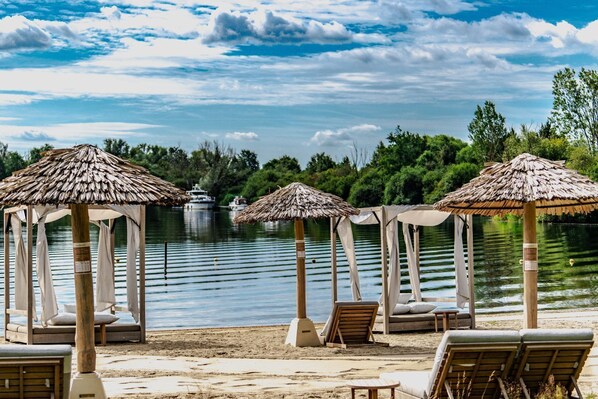 Le MRT Harbor est accessible aux clients du parc pour amarrer ses propres bateaux ou pour les bateaux loués au parc (le port est également accessible aux personnes séjournant à l'extérieur). Depuis le MRT Harbor, vous pouvez traverser le pont bleu en direction de la MRT Beach, une plage privée adaptée à toute types d’activités, tells comme la natation, le paddle, le surf, le SUP-board et même l’e-foiling. Les lacs Maasplassen forment la plus grande région de loisirs aquatiques des Pays-Bas et le parc est situé directement sur ses rives ! En plus de toutes les activités nautiques, le paysage naturel entourant ces lacs est vraiment unique. Avec un vélo/vélo électrique personnel ou de location, il est possible de faire un itinéraire superbe à travers la nature et même au-delà de la frontière belge !