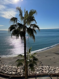 Directement en première ligne sur le bord de la mer et de la carihuela. La description sur le site est bonne. Très belle vue. Nous sommes arrivés par train de l'aéroport. De la station Torremolinos, c'est 8 min a pied jusqu'à l'appartement. L'hôte, très gentille, nous y attendait malgré notre retard pour nous remettre les clés et nous faire visiter. Petit cadeau de bienvenue apprécié ( rosé pétillant, eau, lait, chocolat...). Bien équipé mais petit appartement sans hotte alors si on fait cuire quelque chose, ca va sentir dans tout l'appartement. Beaucoup de bons restaurants a proximité.
