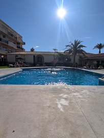 Strandplezier in een buitenzwembad, dicht bij Bajondillo