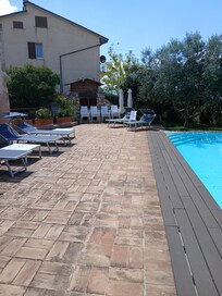 Ja, deze accommodatie heeft een seizoensgebonden buitenzwembad.