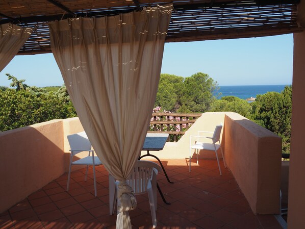 Terrasse mit herrlichem Blick auf das Meer. Der Strand war zu Fuß gut zu erreichen. Die Wohnung bot alles was für unseren Aufenthalt notwendig war. Auch das WLan funktionierte sehr gut. Die Angabe zur Lage war auf FeWo etwas irreführend. Die Wohnung war im Villagio Canneddi zu finden und nicht in der Localita Tinnari. Mit der Wegbeschreibung des Gastgebers konnte sie aber gut gefunden werden. Die Straße ist zuletzt ein Feldweg. Auf dem Sofa auf der Terrasse konnte man wunderbar ausruhen und das Meer genießen. Wir waren insgesamt sehr zufrieden.