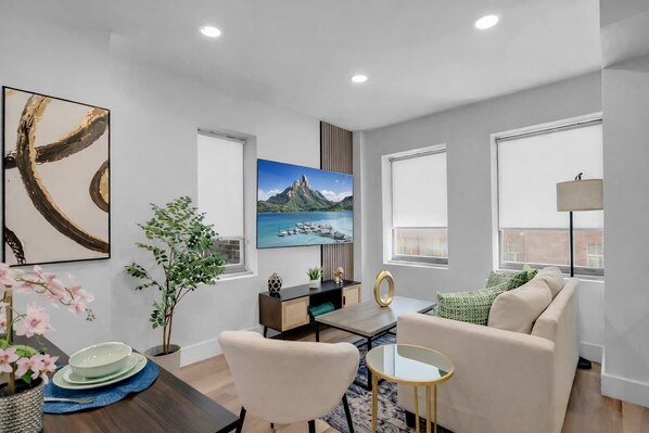 Toutes les chambres de l'hébergement Cozy 1BR: Near BOK Center, Cox Convention Center sont dotées d'atouts confort comme un système de réglage de la climatisation, en plus d'autres services et équipements, notamment un espace bureau et une table à manger.