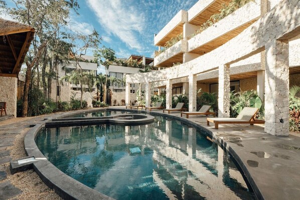 Welcome to Satori Tulum, an exclusive sanctuary nestled in the heart of Tulum’s lush jungle. Here, luxury meets nature in perfect harmony, offering you an unparalleled getaway that blends refined architectural design, high-quality natural materials, and vibrant greenery. Immerse yourself in an oasis featuring two spectacular main pools, thoughtfully curated spaces, and a serene ambiance designed to inspire relaxation and connection.